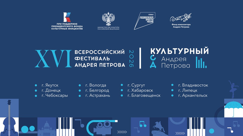С марта по ноябрь 2026 года при поддержке Президентского фонда культурных инициатив, Министерства культуры Российской Федерации в рамках Национального проекта «Семья» пройдёт Шестнадцатый Всероссийский фестиваль Андрея Петрова.