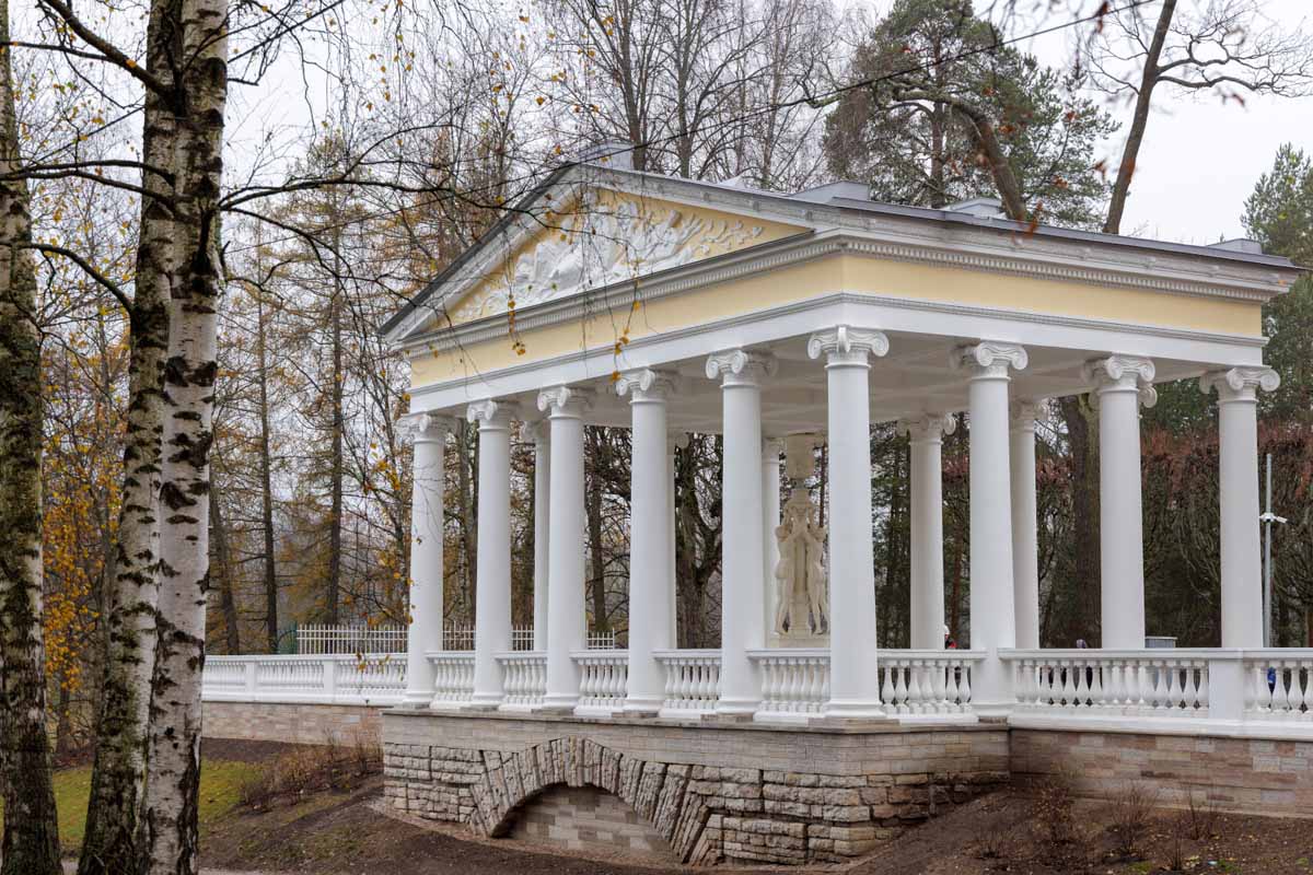 В ходе подготовки к 250-летию дворцово-паркового ансамбля Павловска завершена реставрация Павильона «Трех граций», построенного в 1800 году на террасе Собственного садика по проекту Чарлза Камерона.