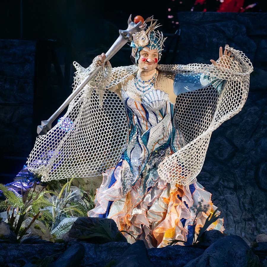 Ощущение волшебства дополняют световые и пиротехнические эффекты и проекции, а также уникальные номера и дизайнерские костюмы. В этом шоу они особенно насыщенны сверкающими элементами - рыбка-то не простая, а золотая!
