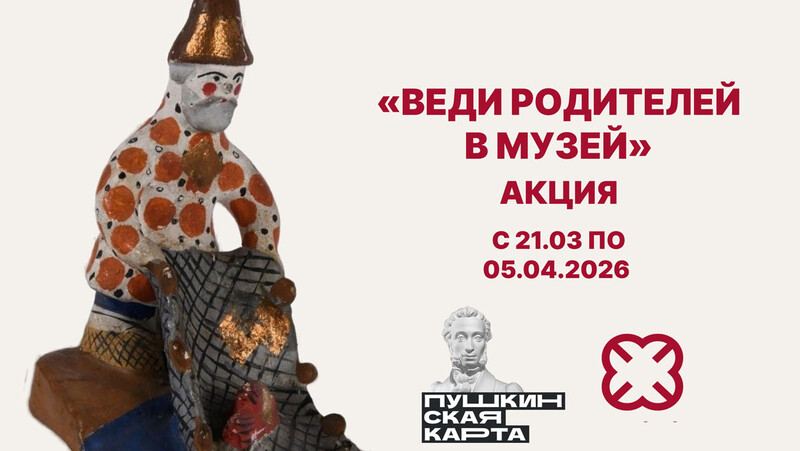 Российский этнографический музей присоединяется к Всероссийской акции «Веди родителей в музей», которая проходит с 21 марта по 5 апреля. В рамках акции при покупке входного билета по «Пушкинской карте» в кассе музея её владелец cможет получить скидку 11% на билеты для родителей.