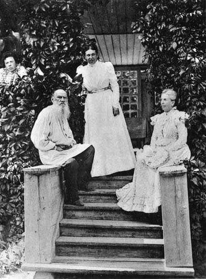 Ясная Поляна. Лев Николаевич, Софья Андреевна (стоит) и Татьяна Андреевна (справа) в преклонном возрасте.